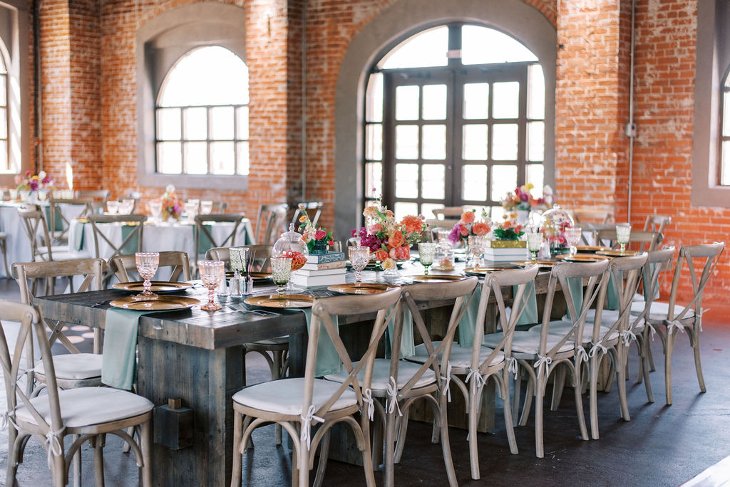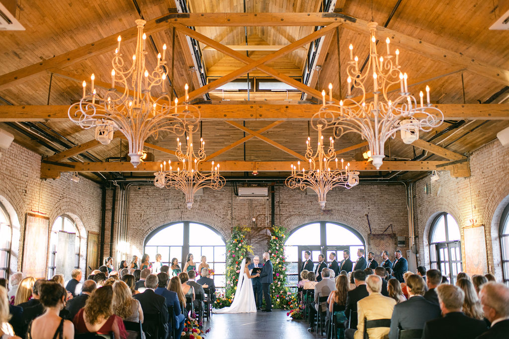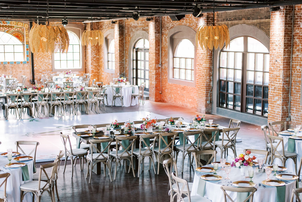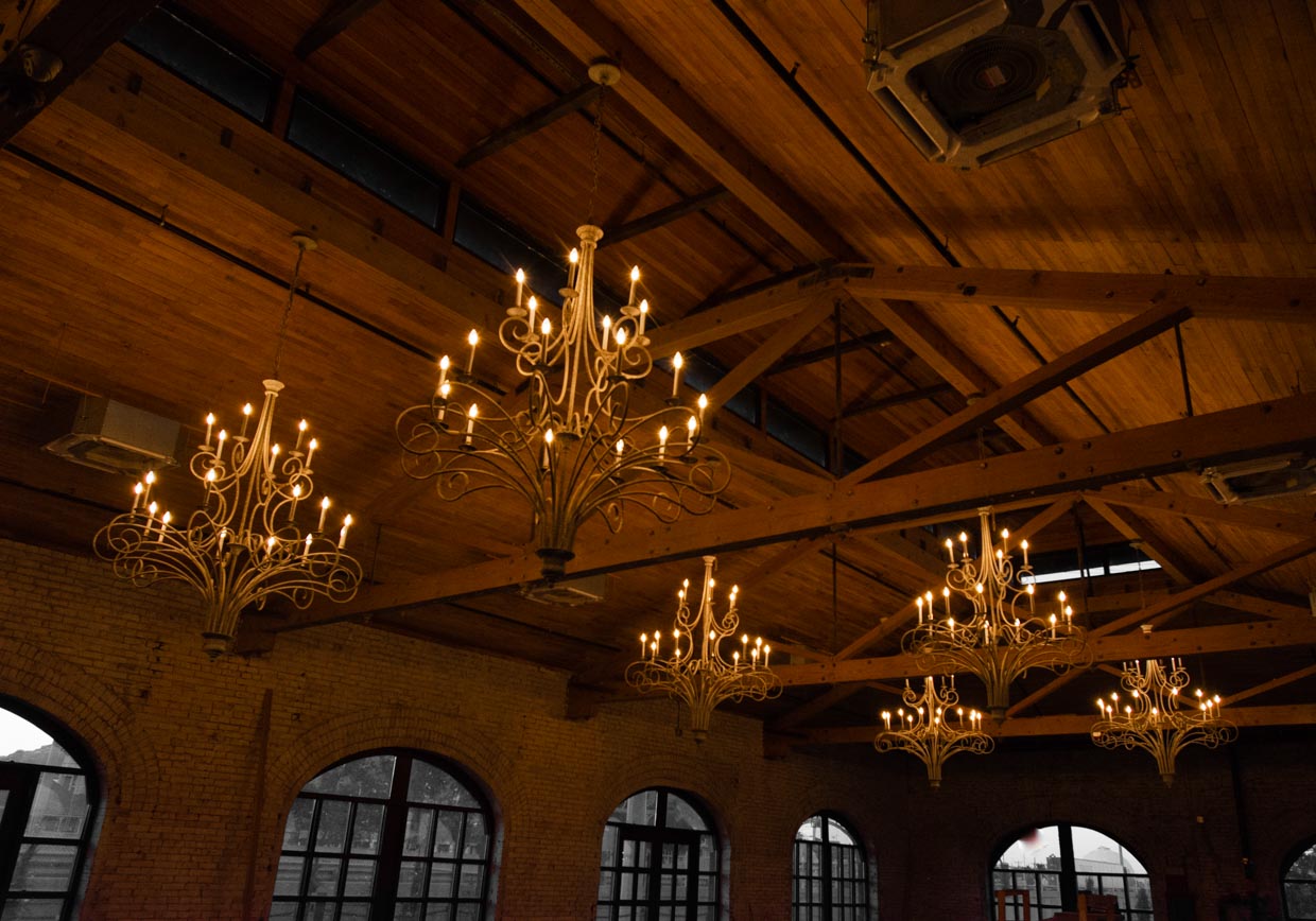 Renovated with a more ceremonious vision in mind. This rustic, yet luxurious space has impressive high vaulted wood ceilings, with customizable down-lighting, self playing baby grand piano, 8 large chandeliers, beautiful white-washed brick walls, and a large but discreet bar area.